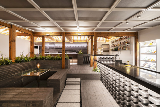 In order to create a special hanok identity, we solved the space using a brick, a traditional object. In order to solve the space with a slightly heavy atmosphere due to the traditional atmosphere and the spatial characteristics of the bar, we considered a horizontal floor to solve the space with the concept of rolling stones in the past and a design that allows you to feel one feeling about the vertical bar structure.