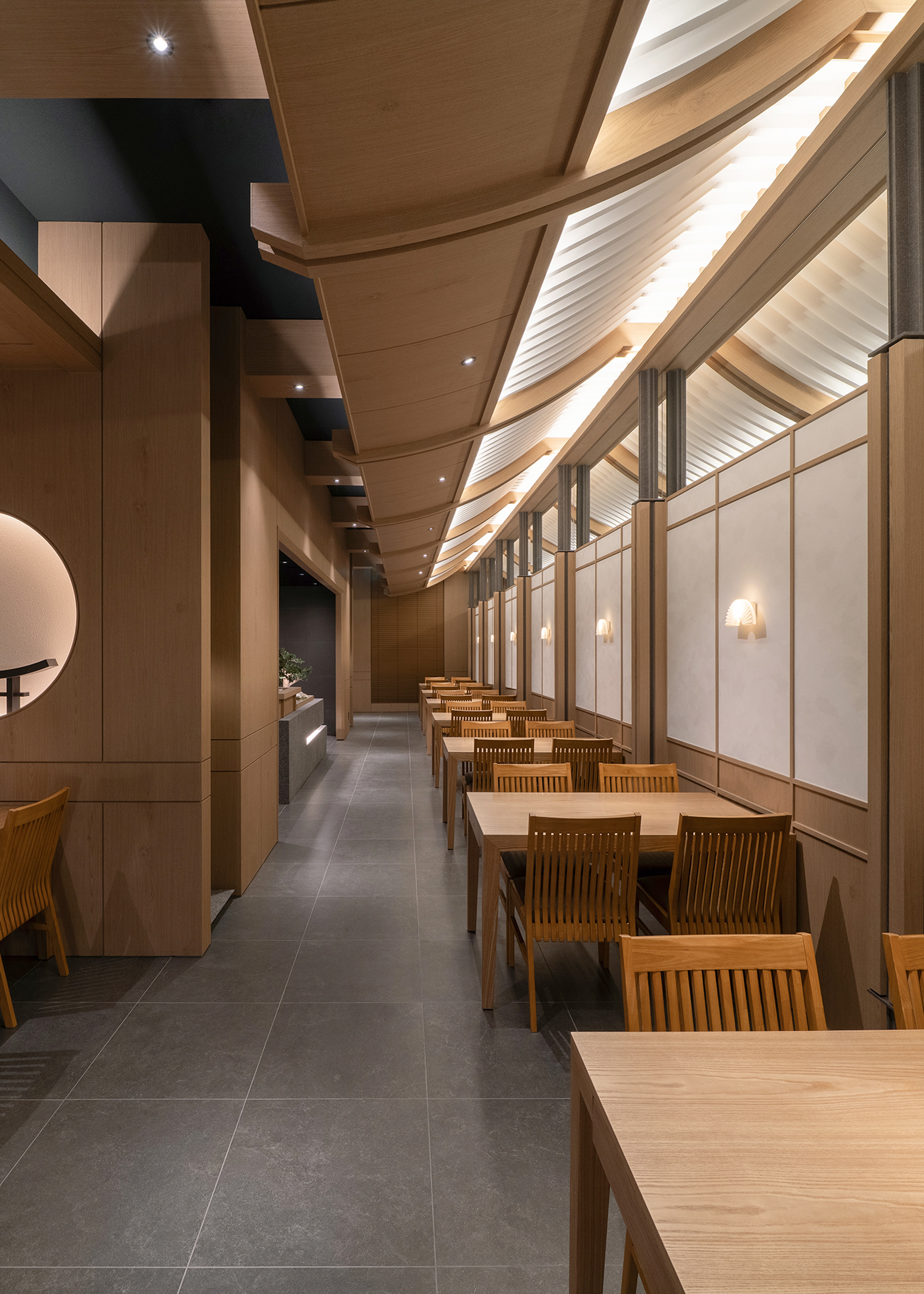 Rooted in the restrained and refined essence of dining, the space reinterprets the structural language of traditional Japanese architecture in a contemporary way,
